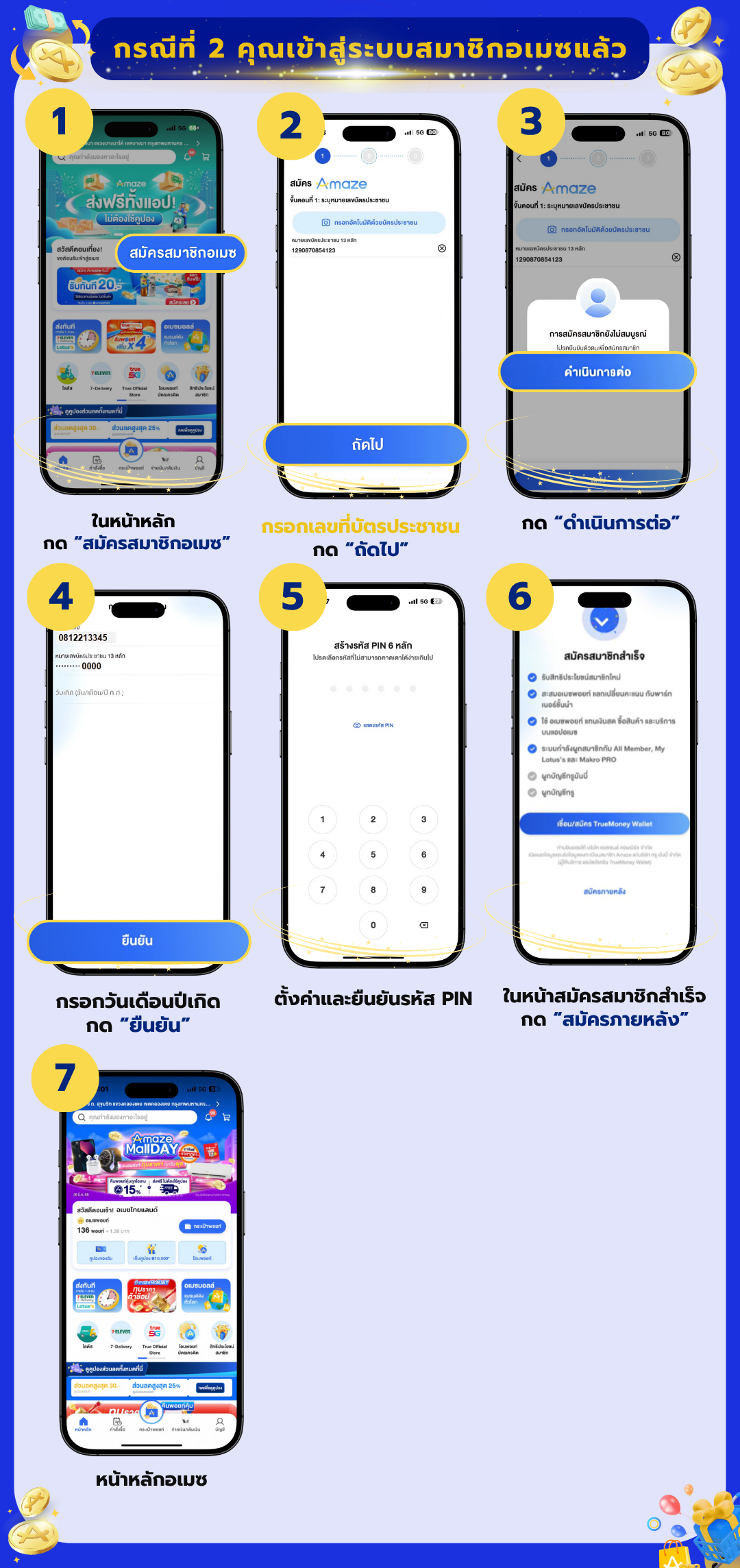 - ในหน้าสมัครสมาชิกสำเร็จ > กด “สมัครภายหลัง” เพื่อเข้าหน้าหลักอเมซ