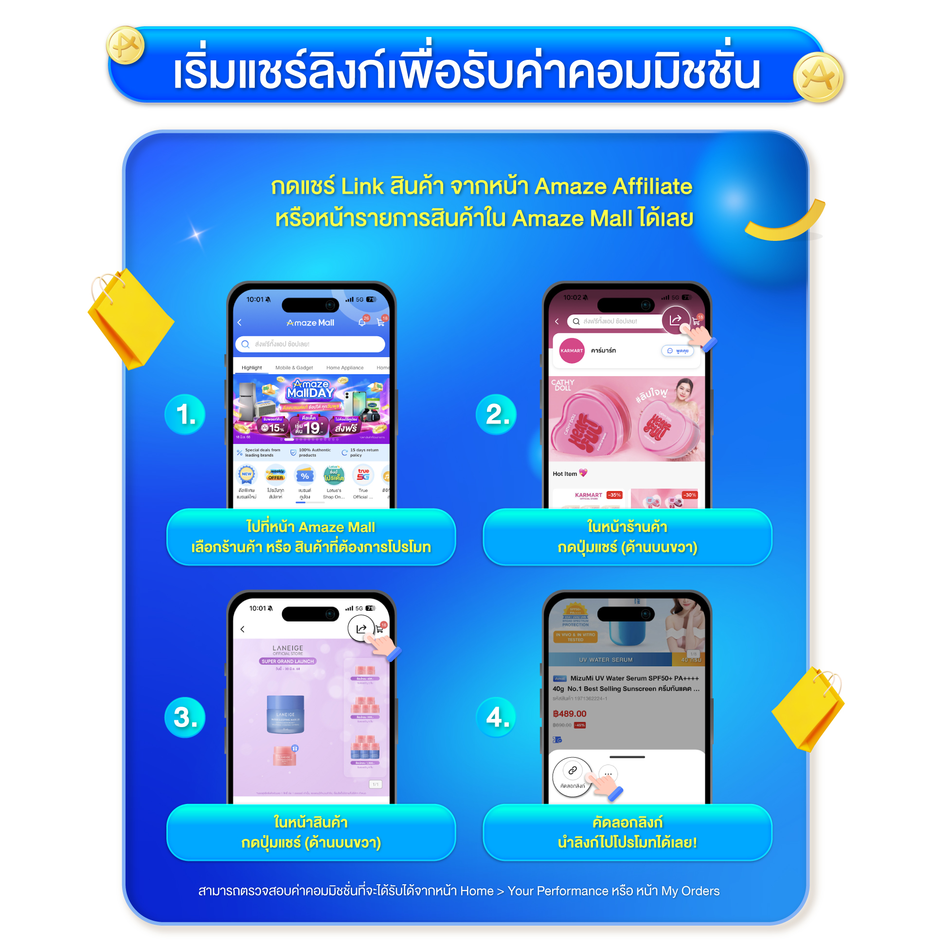 - ค้นหาสินค้าที่ต้องการโปรโมทจากหน้า Amaze Mall หรือหน้า Amaze Affiliate เท่านั้น